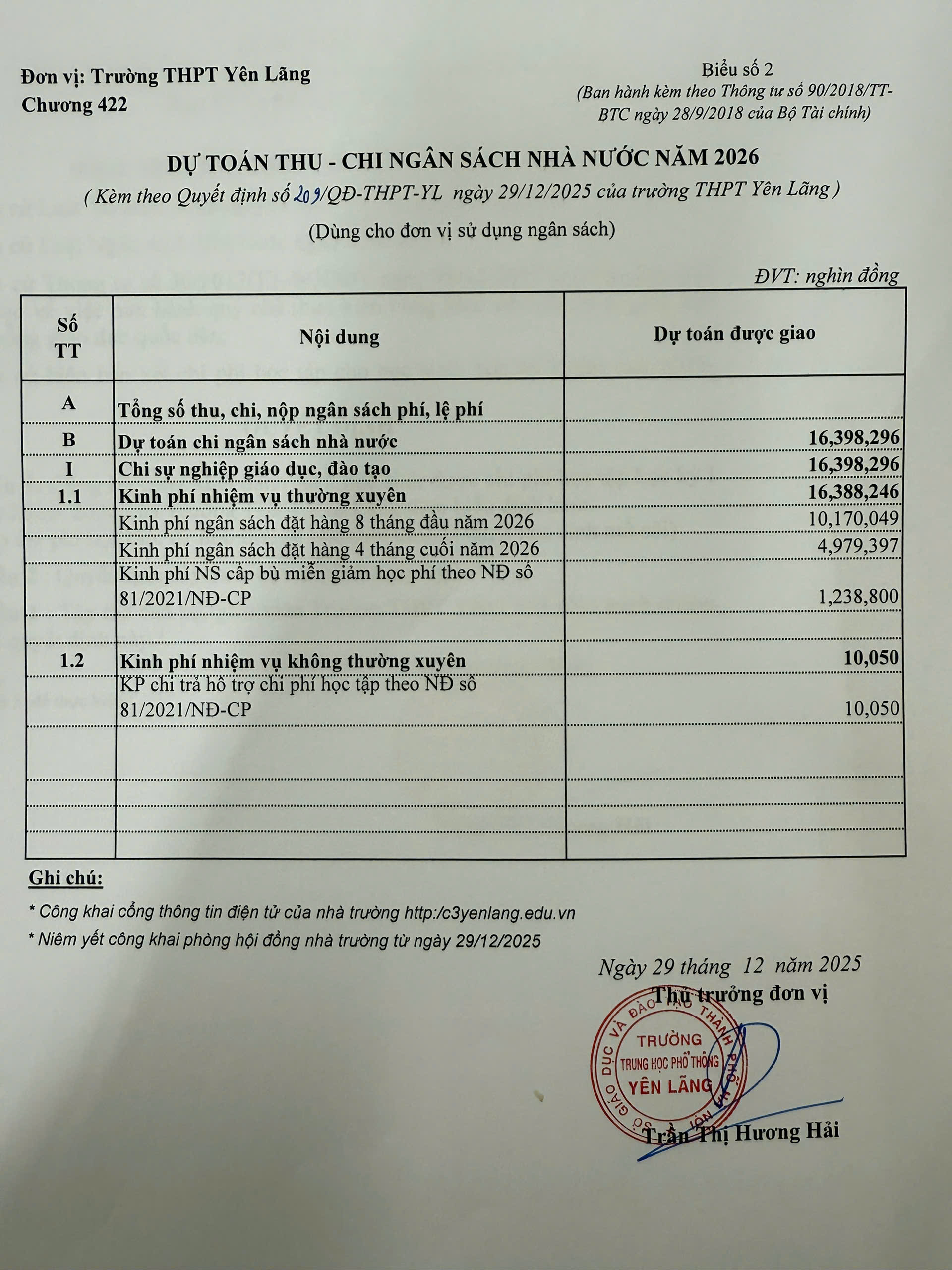 Công bố công khai giao dự toán chi ngân sách năm 2026