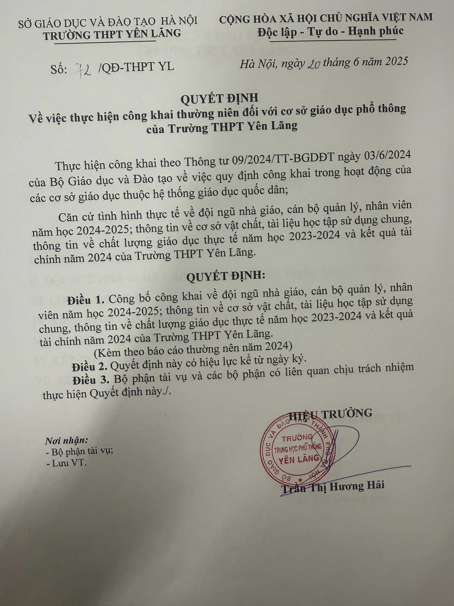 Công khai thường niên đối với cơ sở giáo dục phổ thông